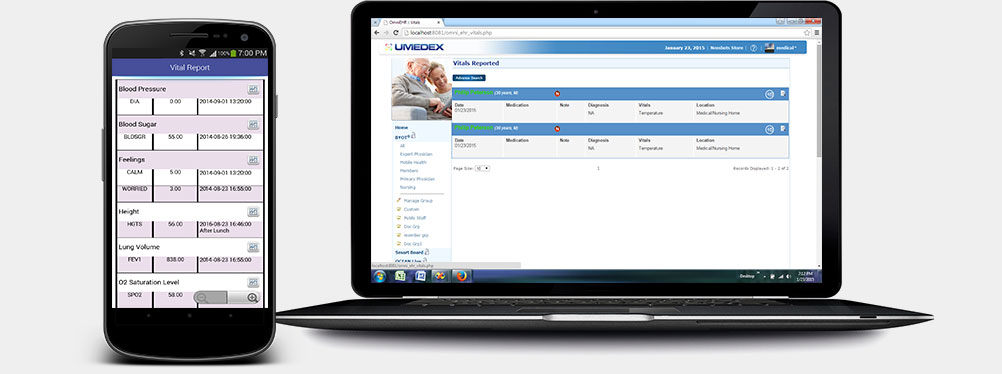 Physician or caregiver will receive new vitals data immediately via our secure mobile app, U-InTouch™ and OMNI™, and on the web via OCEAN™. They can also trend the patient’s vitals, validate effectiveness of the medication, and send feedback and alerts.